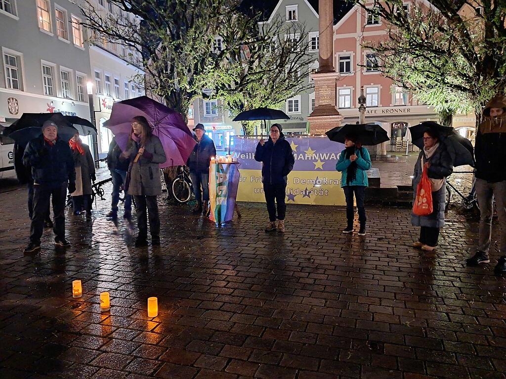 Montags versammelt sich die Mahnwache auf dem Marienplatz. 50 Leute sind diesmal gekommen, die AfD ist Dauerthema. Danach trifft sich "Wir in Weilheim“, 60 Leute kommen, um Ideen gegen die AfD zu sammeln. Leiter Felix Henkel, Sozialdemokrat, sagt: "Das reicht von rechtlichen Hürden über ,Demokratie-Buttons’ bis zur Einbindung der Unternehmen.“ Der Gruppe ist es wichtig, über Parteigrenzen hinweg alle zu erreichen. "Die stille Mehrheit“, wie Henkel es bezeichnet. Die soll nicht mehr still sein.