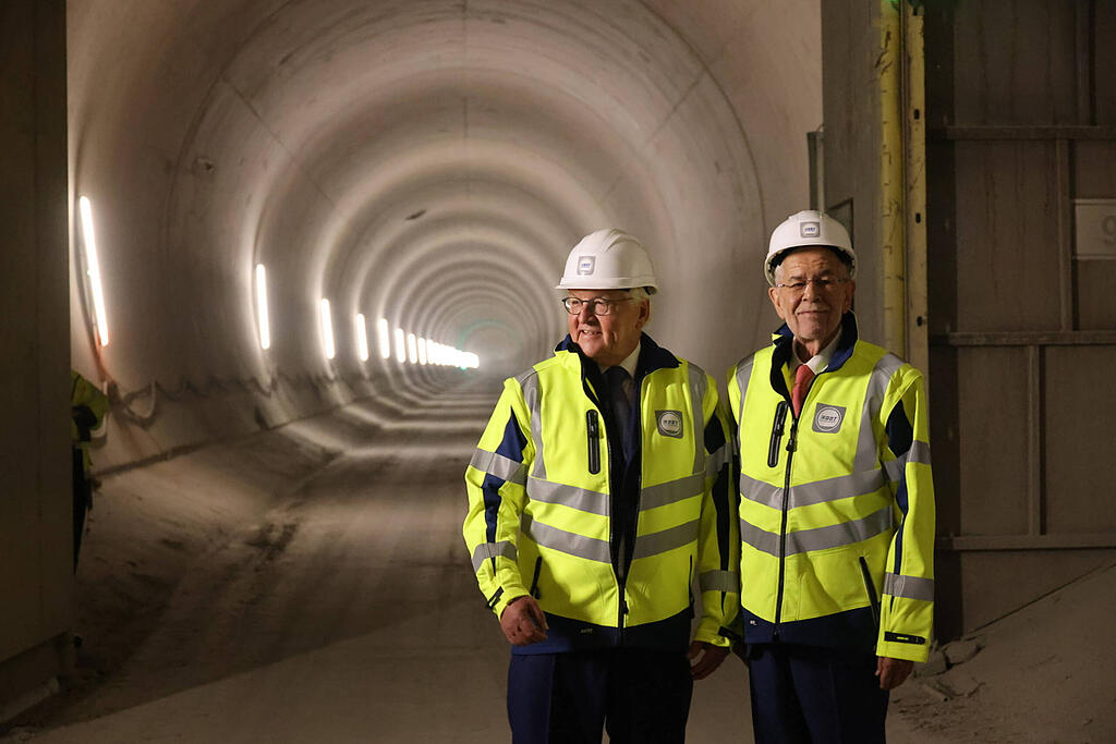 Bundespräsident Frank-Walter Steinmeier mit seinem österreichischen Amtskollegen Alexander Van der Bellen im Oktober an der Baustelle des Brenner-Basistunnels. © IMAGO/Frank Ossenbrink