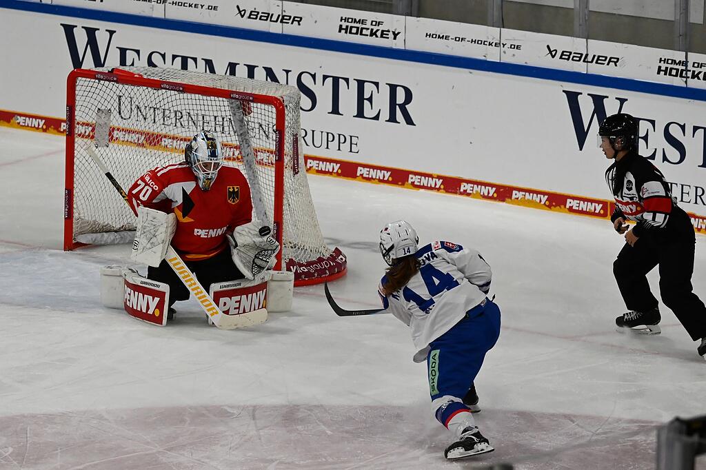 Damit spielt Deutschland am Samstag (14.45 Uhr) gegen Ungarn um den Turniersieg. Die Auswahl des Deutschen Eishockey-Bundes benötigt dafür einen Sieg nach regulärer Spielzeit. Die deutschen Frauen zeigten gegen die Slowakei eine bessere Leistung als beim 3:2 nach Penaltyschießen gegen Frankreich am Mittwoch. Aus der lange deutlichen Überlegenheit machte Deutschland indes zu wenig. "Das macht es als Trainer ziemlich stressig", sagte Bundestrainer MacLeod.