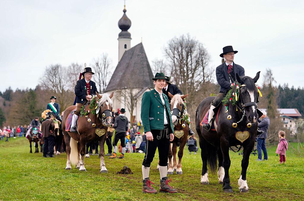 Landwirtschaftsministerin Michaela Kaniber (CSU) fuhr in einer der sieben Ehrenkutschen mit. Erstmals seit Jahren war auch der Münchner Erzbischof, Kardinal Reinhard Marx, dabei. Er hatte den Festgottesdienst gehalten und nahm deshalb nicht an dem gesamten Ritt teil. Vor und nach dem Ritt zeigten Männer auf dem Stadtplatz einen Schwertertanz - ein Zeichen des Siegs des Frühlings über den Winter.
