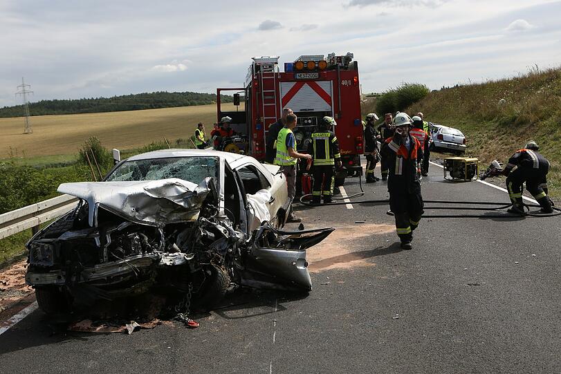 Rödelmaier - Aus noch ungeklärter Ursache geriet der Fahrer eines VW Polo auf schnurgerader und gut einsehbarer Strecke in den Gegenverkehr. Das Fahrzeug touchierte zunächst einen entgegenkommenden Toyota Auto und stieß dann frontal mit einem zweiten Auto zusammen, teilte die Polizei am Montag mit. Beide Fahrzeuge wurden herumgeschleudert und blieben völlig verformt stehen. Die Trümmerteile flogen dabei dutzende Meter weit.