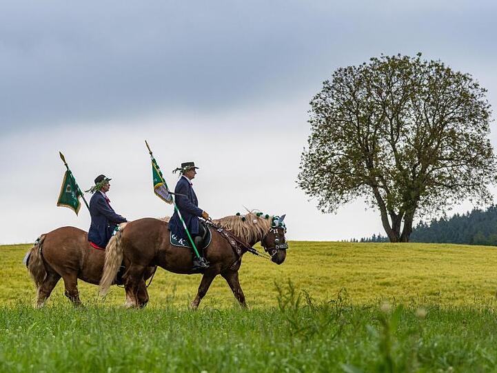 Im Sattel ihrer bunt geschmückten Pferde begannen die Gläubigen ihren Bittgang am frühen Morgen des Pfingstmontags an der Pfarrkirche Sankt Veit in Bad Kötzting. Für die sieben Kilometer lange Wegstrecke benötigten die in Tracht gekleidete Reiter etwa zwei Stunden. An vier Stationen verkündete der Offiziator des Ritts, Kaplan Florian Rein, das Evangelium.