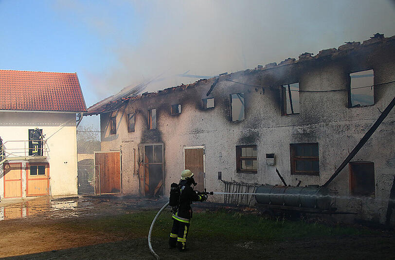 Auch das im Stall untergebrachte Vieh konnte rechtzeitig gerettet werden. Menschen wurden nicht verletzt. Der Sachschaden beträgt nach Polizeiangaben rund 100 000 Euro.