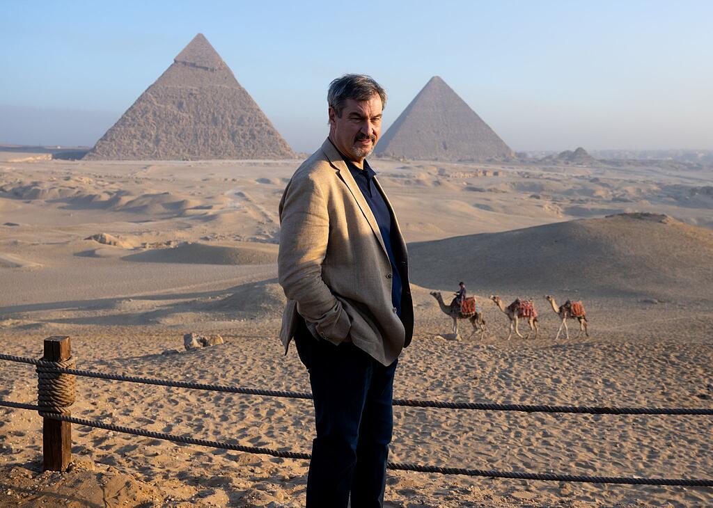 Neben viel Politik und Technologie geht es bei Söder-Reisen traditionell immer auch um Land und Leute. Nachdem er etwa in Schweden mit Schlittenhunden über den Schnee düste und in Ägypten vor den berühmten Pyramiden posierte, sind jetzt Besuchstermine beim "NASA Mission Control Center" in Houston und auf einer Cowboy-Ranch keine echten Überraschungen.