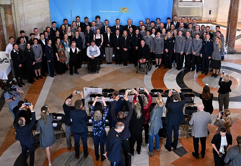 Einige Wochen nach den Winterspielen in Italien hat Ministerpräsident Markus Söder Bayerns gemeinsam mit Sportminister Joachim Herrmann (beide CSU) Sportlerinnen und Sportler mit einem Empfang in der Staatskanzlei geehrt. "Bayern ist Sportland und insbesondere stark im Wintersport: Bei Olympia und den Paralympics in Mailand durften wir wieder überragende Leistungen feiern. Herzlichen Glückwunsch zu 5x Gold, 5x Silber, 7x Bronze und starkem Teamspirit", schrieb er im Anschluss bei der Online-Plattform X.
