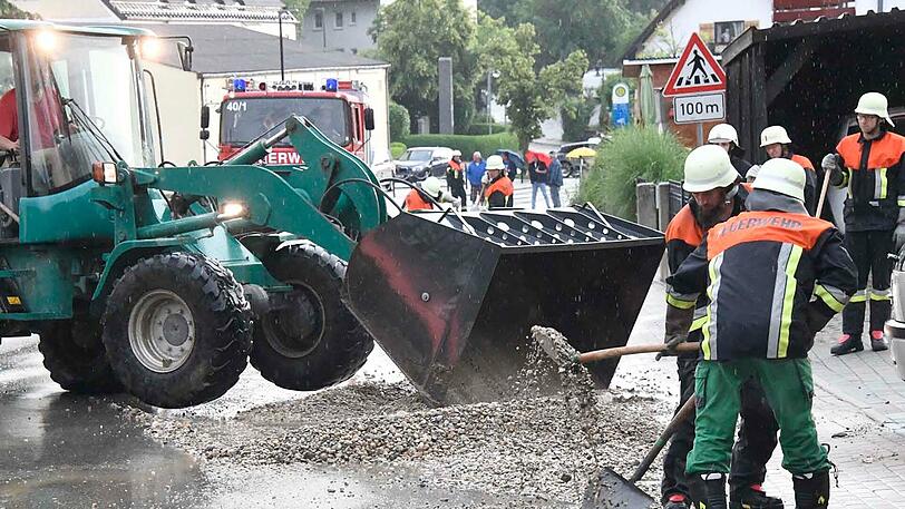 Allershausen/Kempten - Unwetter-Chaos in Allershausen (Lkr. Freising)! Dort waren am Mittwochabend wegen Starkregens etliche Ortsdurchfahrten überschwemmt und nicht mehr passierbar. In Kranzberg, südlich von Allershausen, mussten Radler zum Freiräumen der Fahrbahn eingesetzt werden.