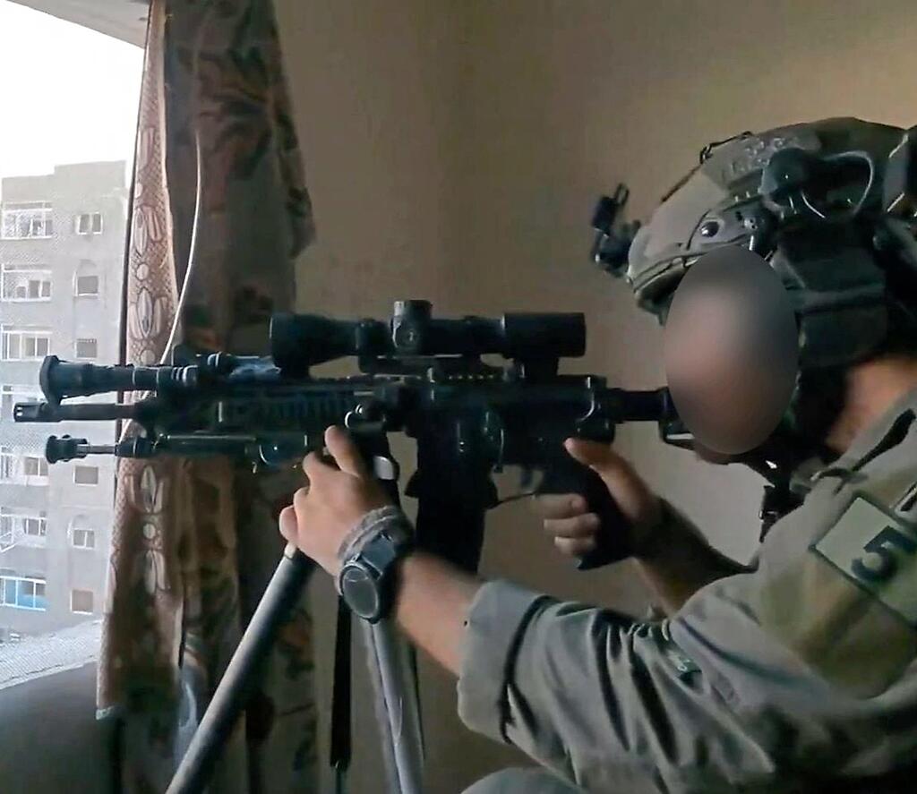 Teile von Gaza gleichen im November 2023 einem Trümmerhaufen. Zusammengeschnittene Videoaufnahmen legen nahe, dass Daniel G. selbst als Scharfschütze tätig ist. Ein Clip zeigt den jungen Mann vor einer Fensteröffnung. Er trägt einen Helm, blickt durch das Visier eines aufgerüsteten Sturmgewehrs. Finger am Abzug.