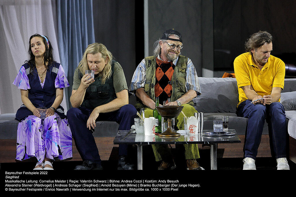 Leider ist gerade dieser erste Akt "Siegfried" ein Tiefpunkt in Valentin Schwarz' Deutung: Wie Wotan fängt sich der Regisseur in eigner Fessel. Zunächst ist es eine gelungene Pointe, wenn Siegfried ein Laserschwert geschenkt bekommt und den Plastikramsch sofort zerschlägt: wissen wir doch längst, dass die Regie die alten Machtsymbole entsorgt.