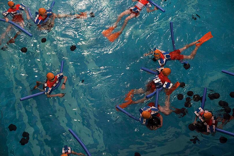 Das Schwimmbad spielt bei Wallace eine Nebenrolle. Die mit dem Münchner Volkstheater koproduzierte Aufführung in der Kleinen Schwimmhalle des Müller’schen Volksbads rückt den Schauplatz hyperrealistisch ins Zentrum. Die heikle Übersetzung eines inneren Monologs ins Dramatische hat der Bearbeiter und Regisseur Abdullah Kenan Karaca nicht wirklich gelöst. Das Schwebende verwandelt sich – wie bei jeder Dramatisierung – in vordergründige Direktheit. Auch die Ehekrise der Eltern bekommt einen höheren Stellenwert als in der Erzählung.