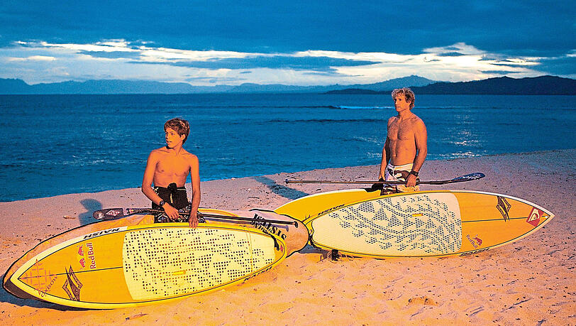 Es war immer Druck drauf. Es war nicht das kleinste Projekt - und Berlinger ist teuer! Ich weiß nicht, wie viel er bekommen hat, aber sicher nicht wenig. Allein seine Crew: Das sind alles die Besten, die es gibt. 16 Leute! Wenn wir zum Strand gegangen sind, herrschte volles Chaos. Die anderen Surfer dachten "Was ist denn hier los?" Das war nicht gerade Surf-Style. Ich musste mich bei denen erstmal für den Auflauf entschuldigen. Ich bin nicht der Typ, der rauspaddelt und sagt: "Ich bin da!" Im Gegenteil: Ich bin ziemlich ruhig. Aber es ist unmöglich, ruhig zu sein, wenn fünf Kameras auf dich gerichtet sind. Wir sind so weit geflogen, nach Namibia, Peru, Costa Rica, haben so viel Geld ausgegeben - und konnten dann nur kleine, langweilige Wellen zeigen. Auch zuhause auf Maui: nur mittelgroße Jaws (bekannter Surf-Spot auf Hawaii, d. Red.). Gerade in Zeiten von Instagram zählen doch nur die Extreme.