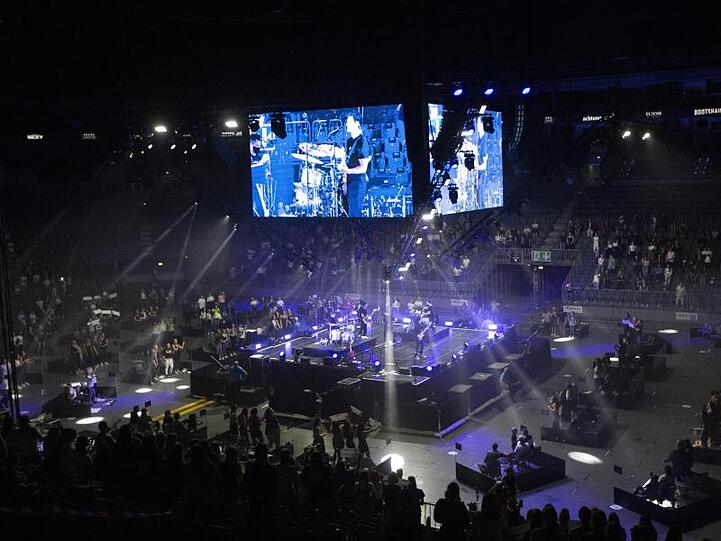 Die stark zurückgefahrene Zuschauerzahl ist Teil des Plans. Rund 900 Fans sind zugelassen - in einer Halle, in die bis zu 20.000 Menschen passen. Damit sich ihre Wege nicht kreuzen, wurde die Arena in fünf unabhängige, radikal getrennte Zonen eingeteilt. Jede hat einen eigenen Ein- und Ausgang, eigene Toiletten, eigene Getränkestände. Auffälligster Teil des Konzepts sind aber die sogenannten Cubes, also Würfel, im Innenraum. Die Plexiglas-Boxen für je wenige Zuschauer sind zur Bühne hin und nach oben offen. Zwischen ihnen: Abstand. Gleiches gilt auf dem Unterrang, auf dem auch Fans sitzen dürfen. Weiss tritt vor einem minimalen Publikum auf.