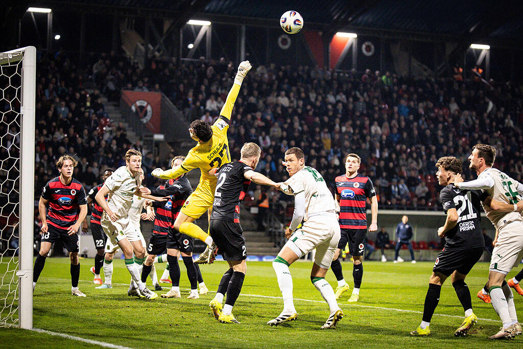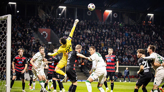 Brenzlige Situation für Sechzig: Dähne fliegt unter einem Freistoß von der linken Seite durch. Die Kugel landet bei Ex-Löwe Kloss, der den Ball beim Schuss aber nicht richtig trifft. Dähne packt dann doch noch zu. Solche Aktionen sieht man vom sonst so souveränen Löwen-Schlussmann eher selten.
