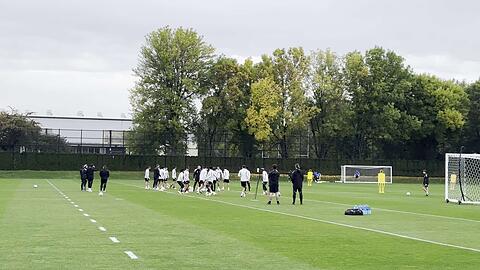 Die Bayern um Kapitän Manuel Neuer absolvieren in diesen Minuten die ...
