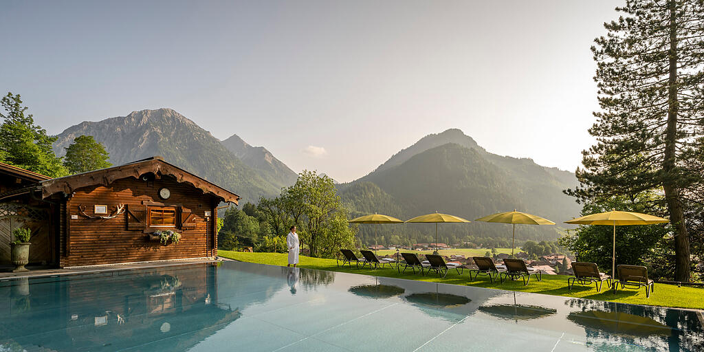 Gleichzeitig wurde behutsam erneuert: Ein lichtdurchfluteter Restaurantanbau mit großen Panoramafenstern öffnet heute den Blick noch weiter in die Berge. Zum modernen Wellnessbereich - in den auch historische Elemente Einzug hielten - mit Infinity-Außenpool, zwei weiteren Pools und fünf Saunen gesellt sich seit diesem Jahr ein Spa-Café – ein Ort, an dem man im Bademantel sitzen kann, ohne die Ruhe zu unterbrechen.