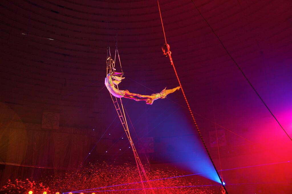 Viele der Artistinnen und Artisten sind ukrainische Meister in Sportakrobatik, Eiskunstlauf, Kunstturnen oder Trampolinspringen. Die jüngste ist 22 Jahre alt und Ballerina, die älteste ist 46, sagt Direktor Dmytro Trunov. Der Kiewer Nationalzirkus, der ursprünglich ein stationärer Zirkus war, entwickelte nach dem russischen Überfall auf die Ukraine eine Wandershow (das Zelt hat Platz für rund 850 Zuschauer jeden Alters). Seit Anfang 2025 hat Waterland seinen Sitz in Polen.
