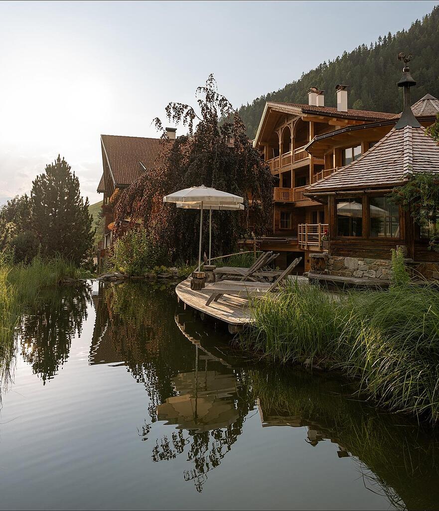 Der Lüsnerhof ist nachhaltig mit viel Zirben- und Lärchenholz gebaut. Lehmwände und regionales Dolomitengestein schaffen eine wohlige Atmosphäre, in der Gäste leicht entschleunigen können. Entspannung gelingt auch wunderbar im lichtdurchfluteten Badehaus, in der Ritualsauna mit offenem Holzfeuer, am kleinen Außenpool, an den Wellness-Stationen im Garten und am Naturbadeteich.
