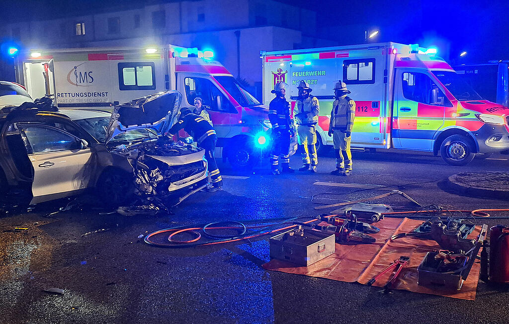 Bei der Kollision wurde ein Fahrzeug seitlich getroffen und der Beifahrer verletzt im Fahrzeug eingeklemmt. Die Feuerwehrleute entschieden, außer dem Hilfeleistungslöschfahrzeug weitere Verstärkung zu rufen. Zudem wurde ein Notarztteam alarmiert. Während der verletzte 25-Jährige medizinisch erstversorgt wurde, so ein Sprecher der Feuerwehr, wurde parallel die technische Rettung des Unfallopfers vorbereitet.