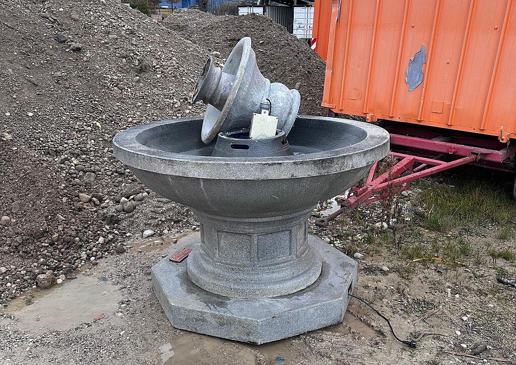 Nach dem Fest kam es dann zu einer Abhol-Panne, und einer der Brunnen blieb verwaist auf dem Gelände zurück.