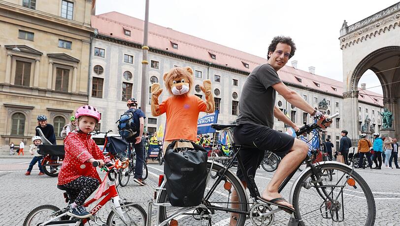 München – Man lebt gefährlich, mindestens ungemütlich, wenn man als Kind mit dem Radl auf Münchens Straßen unterwegs ist. Oder als Eltern mit (kleinen) Kindern: Gehsteige, wo die Kleinen fahren dürfen, sind oft von Autos zugeparkt, E-Rollerfahrer pesen so rasant auch auf Radwegen, dass man's mit der Angst zu tun bekommt. Und je höher Autofahrer in ausladenden Wagen hocken, umso schlechter können sie kleine Radler sehen, beim Rechtsabbiegen, zum Beispiel. Alles Gründe, warum sich am Sonntag große und kleine Fahrradfahrer der Familien-Radldemo "Kidical Mass" des ADFC angeschlossen und kinderfreundliche Straßen gefordert haben. "Autos, bitte runter vom Gehweg", fordert etwa ein Familienvater aus Perlach. Die Mutter von zwei kleinen Mädchen aus der Maxvorstadt beklagt "zu viele große Autos, zu viel Tempo, zu wenig Rücksicht", und bittet: "Achtet auf Kinder, nicht auf eure Handys."