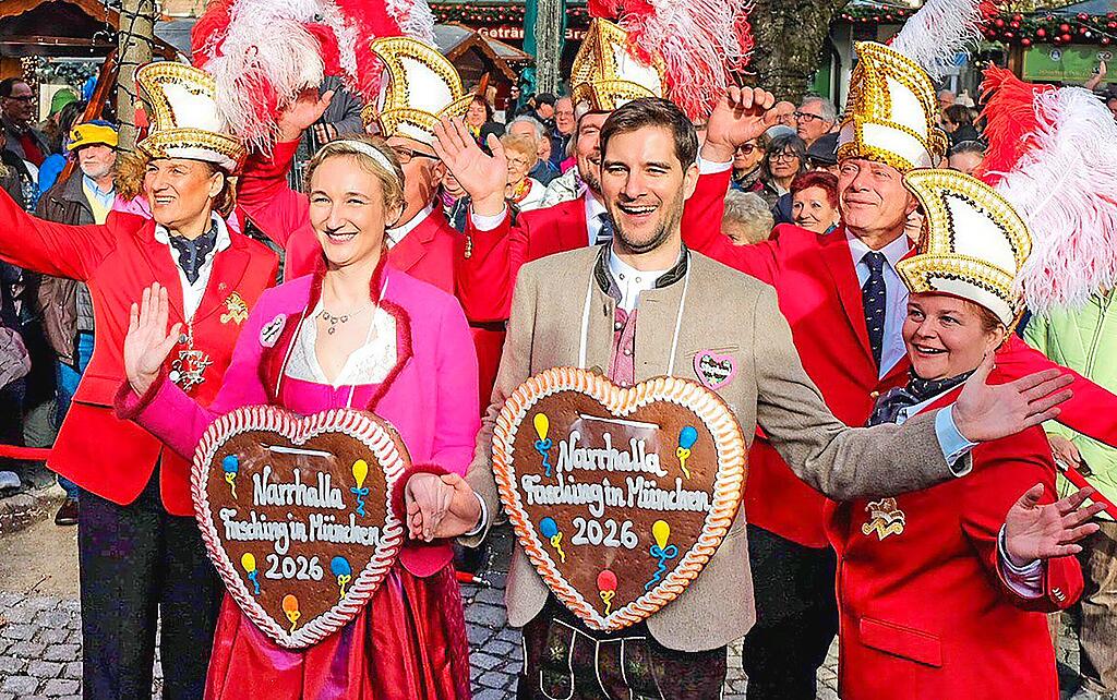 Neues Faschingsprinzenpaar stellt sich auf dem Viktualienmarkt vor
