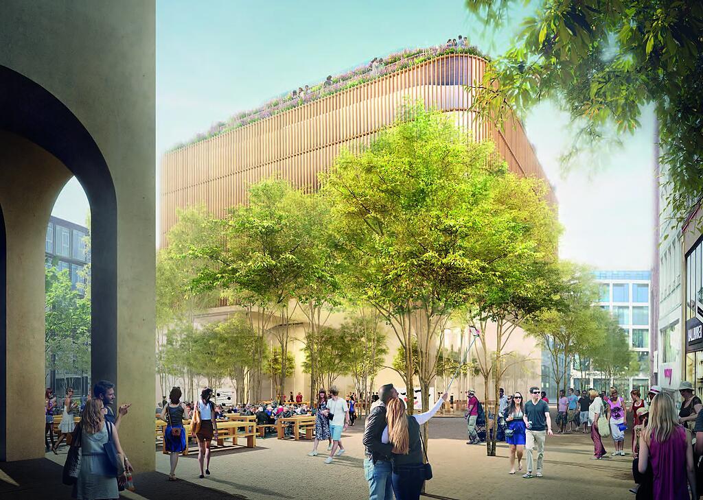 Dort, wo heute das Hirmer-Parkhaus steht, soll neuer Platz entstehen: mit einem Wohn- und Geschäftshaus, mit einer neuen Fußgängerzone, auf der einmal 50 Bäume wachsen. Den Entwurf dafür hat der Star-Architekt Norman Forster schon 2019 erstellt. Jetzt kommt neuer Schwung in das Projekt.
