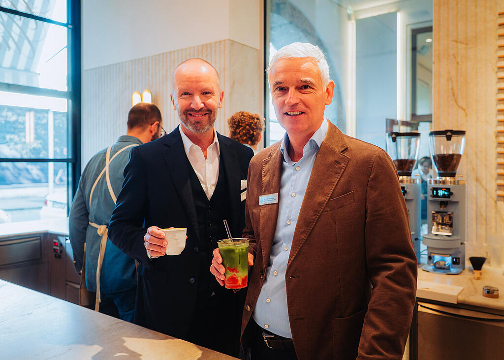 Der Raum, in dem zuletzt ein Juwelier sein Geschäft betrieb, erinnert optisch an Dallmayr, aber eben auch an einen hippen Coffeeshop, beziehungsweise einen Coffee Club, wie Dengler betont. "Hier kommen wir nicht nur mit Kunden, sondern mit Freunden zusammen. Das soziale Element ist uns ganz wichtig." Dallmayr-Kaffee und, wie es sich gehört, Matcha kann man hier nicht nur kaufen, sondern auch trinken – zum Mitnehmen oder vor Ort.