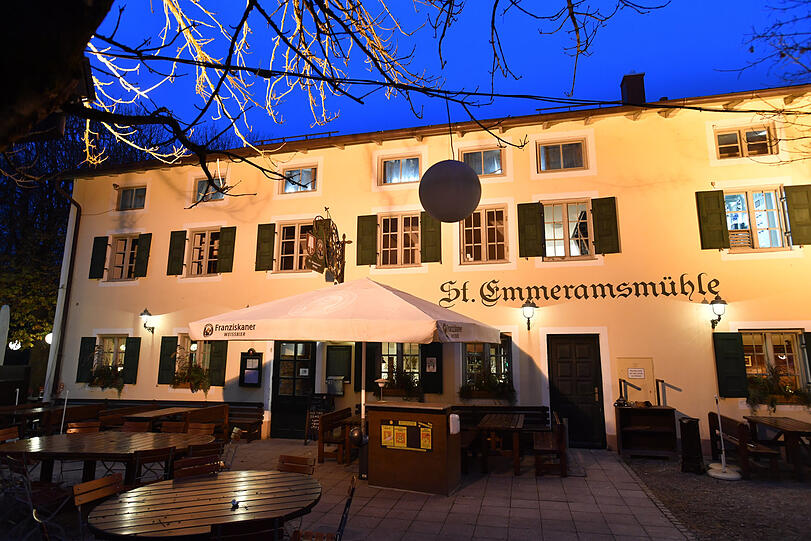 Schließen musste die St. Emmeramsmühle während der Renovierungszeit - außer im Lockdown - nicht. Der Betrieb von Restaurant und Biergarten lief dank zwei Foodtrucks und einem Schankwagen direkt vor dem Haus weiter.