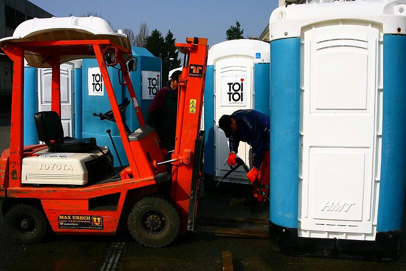 Der Pflasterer hatte am Morgen versehentlich versucht, mit einem Gabelstapler ein Dixi-Klo umzusetzen - da saß aber gerade ein anderer Handwerker drin!
