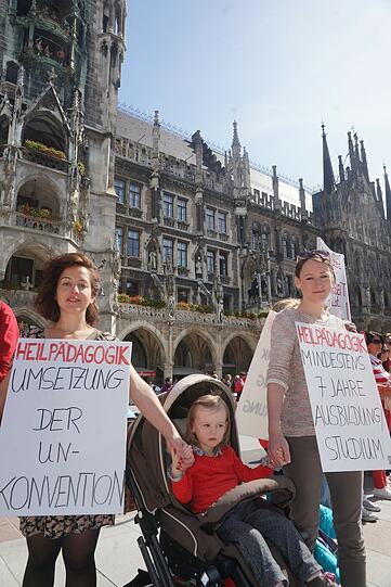 Zwischen 27 und 39 Euro monatlich mehr hätten die ErzieherInnen kassieren sollen, doch das ist nicht das, was sich Verdi unter einer Aufwertung der sozialen Berufe vorstellt. Aus Protest haben am Freitag deshalb etwa 2000 streikende ErzieherInnen eine Menschenkette ums Münchner Rathaus gebildet.