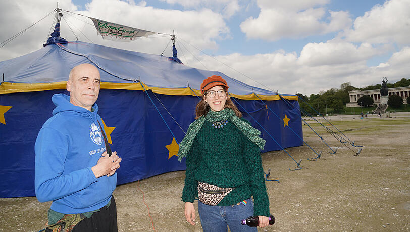 München - Es ist windig auf der Theresienwiese, sehr windig. Die Skateboard-Fahrer mit ihren großen Segeln freut das. Ein wenig wärmer könnte es aber schon gerne sein. Vielleicht haben sich deshalb am ersten Tag des Klima-Camps erst wenige Teilnehmer eingefunden. "Um die 50", schätzt Mitorganisator Hagen Pfaff (59). 300 sollen es mit dem schöneren Wetter am Wochenende schon noch werden, hoffen er und seine Mitstreiterin Eva Winker (29).