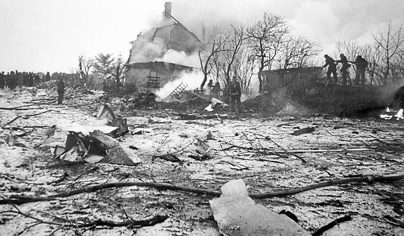 Das Flugzeug hebt nicht ab, rast über die Startbahn hinaus, durchbricht den 270 Meter langen Sicherheitsstreifen. Die Maschine wird ein paar Meter in die Höhe geschleudert, bevor sie in ein Haus donnert, auseinanderbricht und in Flammen aufgeht. Leblose Körper liegen im Schnee. Zwanzig Menschen sind sofort tot, drei weitere erliegen später ihren schweren Verletzungen.