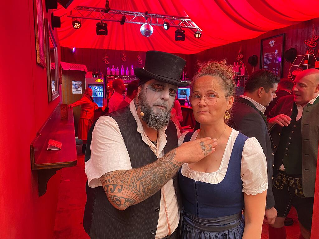 "Wir sind wie eine Familie hier", sagen Baehr und Recknagel. Und das fühlt sich auch für die Gäste so an. Die haben auch schon ihren ganz eigenen Wiesnhit im Zelt. Zu "Baila Baila" tanzen sie regelmäßig Polonaise, während nebenan Rufus seine Opfer köpft.