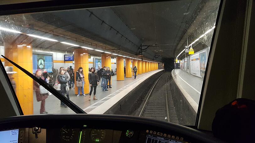 "Ich glaube, die Leute unterschätzen oft, dass man teils mit 60 Sachen in den Bahnhof einfährt", sagt Fahrschüler Neudeck. Im Tunnel fährt die S-Bahn übrigens 60 bis 80 km/h, draußen auch 90, es gibt Abschnitte, auf denen bis zu 140 km/h möglich sind, etwa auf dem Weg zum Flughafen.