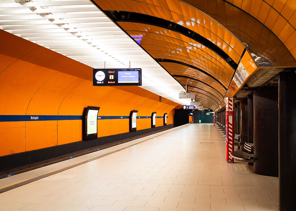 Während an der Oberfläche die Menschen durch die Straßen eilen, wirkt es an den U-Bahnsteigen fast wie ausgestorben. Nur vereinzelt sitzen Menschen ratlos auf den Bänken und scrollen in ihren Handys nach Ersatz. Am Marienplatz bestätigt eine Anzeige, was die leeren Gleise bereits verraten: "Derzeit kein Zugbetrieb". Gleichzeitig geben die großen Leinwände an der Tunnelwand eine falsche Hoffnung. "U-Bahn fährt ein!", steht dort in großen Lettern. Doch seit Stunden fährt hier nichts.