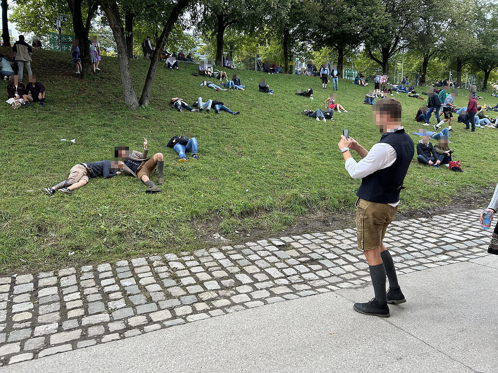 Hier zeigt sich die Wiesn von ihrer hässlichsten Seite. Wer sich dazu entscheidet, am Hügel rund um die Bavaria seinen Starkbier-Rausch auszuschlafen, muss im schlimmsten Fall damit rechnen, am nächsten Tag ein Beweisvideo davon im Internet zu finden. Eines, dass prinzipiell alle sehen können: die Freundin, die Eltern, Kollegen – vielleicht sogar der Chef.
