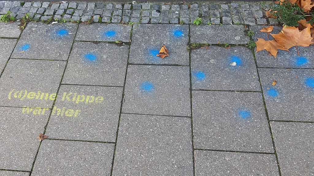 Bunte Punkte weisen auf weggeworfene Kippen hin