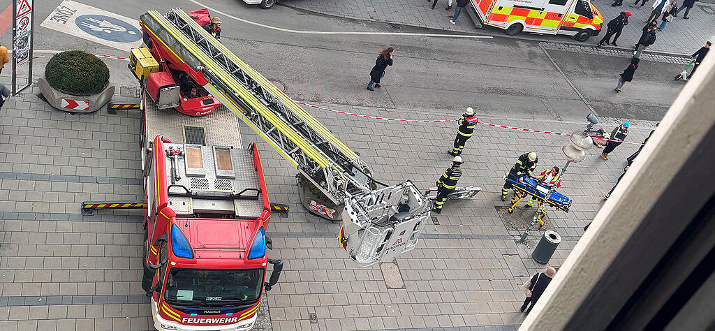 Feuerwehreinsatz am Marienplatz: Mann muss mit Drehleiter aus Fenster gerettet werden