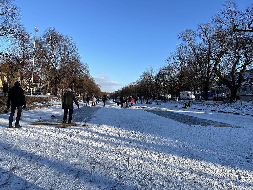Und dann auch noch so herrliches Wetter. Kein Wunder, dass es München nach draußen treibt – zum Beispiel zum Nymphenburger Schlosskanal. Denn die Atmosphäre dort ist eine ganz besondere. Entlang des Kanals wird energisch Eisstockschießen und -hockey gespielt. Richtung Hubertusbrunnen wird es ruhiger. Dort können Schlittschuhe ausgeliehen werden und es gibt Getränke zu kaufen. Ein AZ-Besuch.