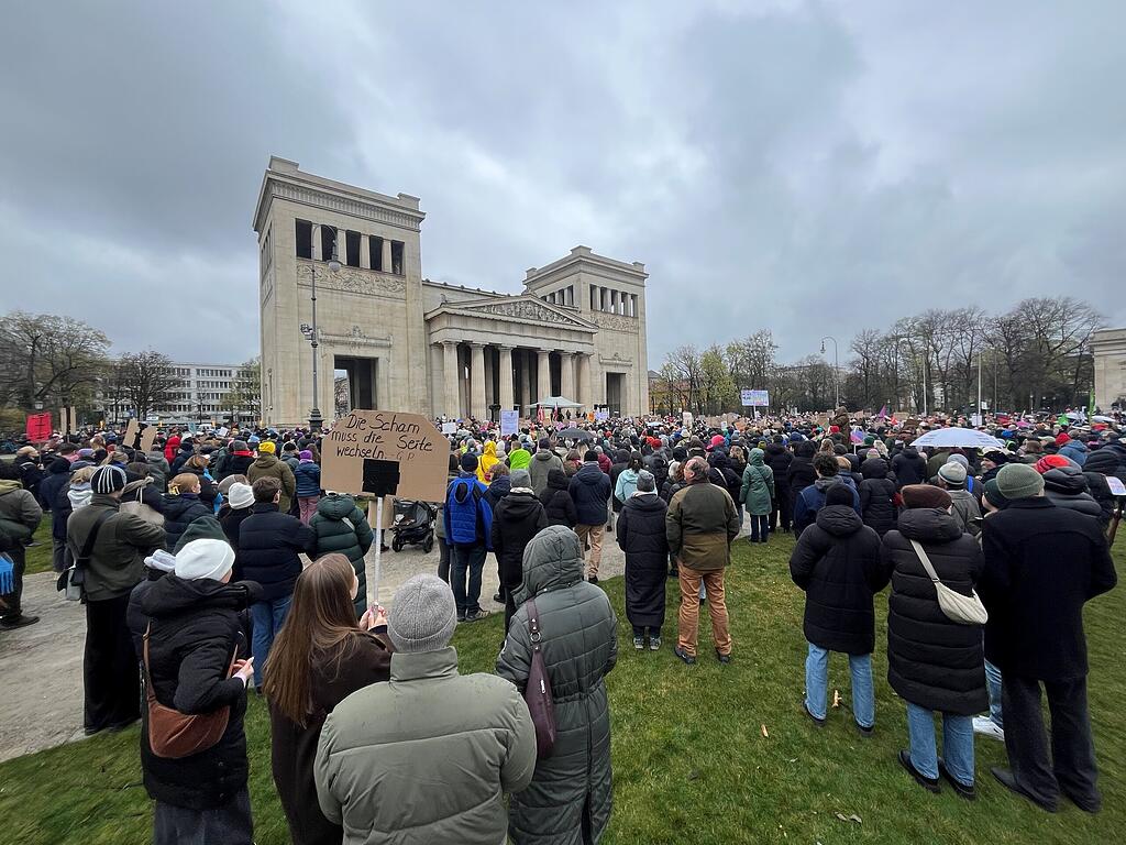Als Agnes L. gefragt wird, warum sie an diesem Sonntagnachmittag zur Demo am Königsplatz gekommen ist, sagt die 48-Jährige: "Ich möchte meine Wut kundtun."