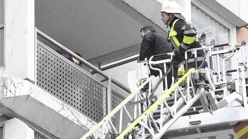 Mithilfe einer Drehleiter konnten Beamte den Balkon erreichen