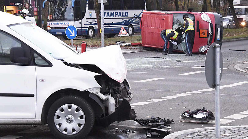 Neuperlach: Kleinbus kippt nach Crash um - mehrere Verletzte