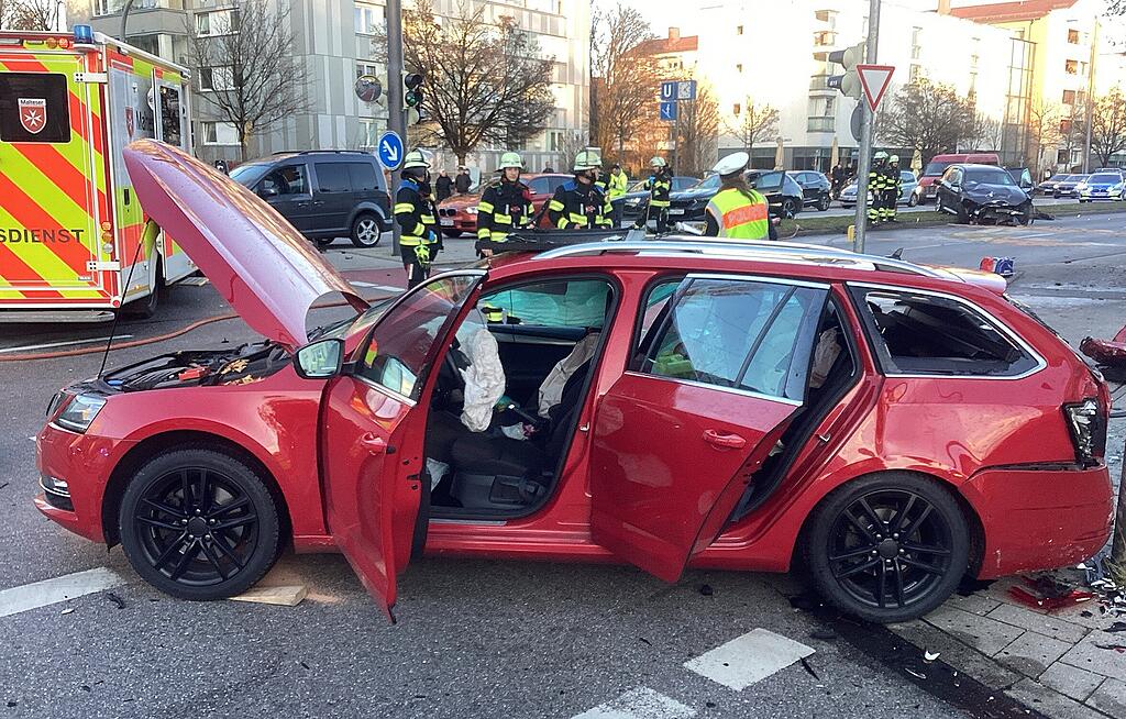 Eine Frau mit zwei vierjährigen Kindern im Auto will in München links abbiegen. Auf der Kreuzung kommt ein anderes Fahrzeug entgegen – und es kommt zum Crash.