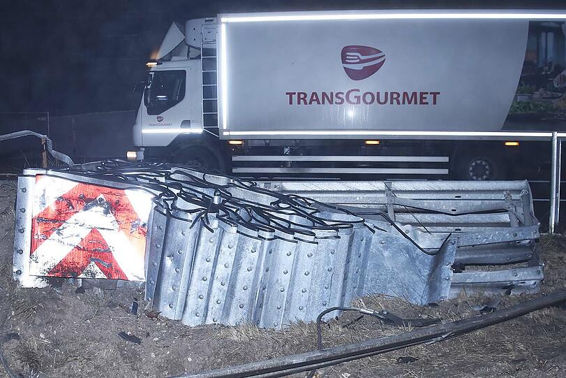 Vermutlich auf Grund von Sekundenschlaf ist ein 50-Jähriger mit seinem Lastwagen von der Fahrbahn abgekommen und gegen einen Fahrbahnteiler geprallt. In der Folge habe der Lkw mehrere Fahrzeuge touchiert. Neben dem Lkw seien drei Autos mit insgesamt fünf Insassen in den Unfall verwickelt gewesen.