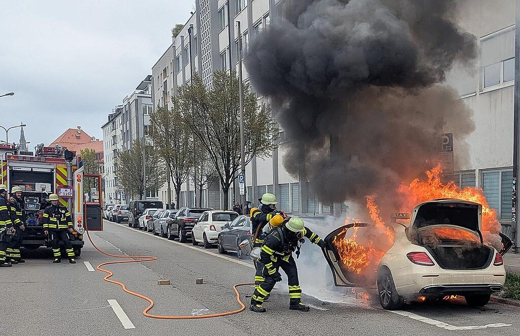 Taxi in Obergiesing geht in Flammen auf: Erste Löschversuche haben kaum Effekt