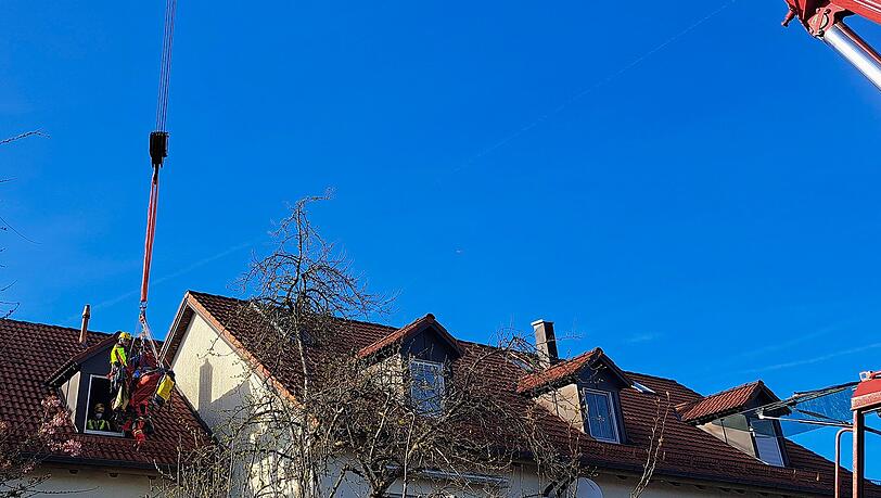 Die Münchner Feuerwehr spricht von "Überlandhilfe mit schwerem Gerät": Deren Einsatzkräfte unterstützten in Unterschleißheim (Landkreis München) und brachten einen Patienten unter ständiger medizinischer Betreuung eines Höhenretters in Sicherheit.