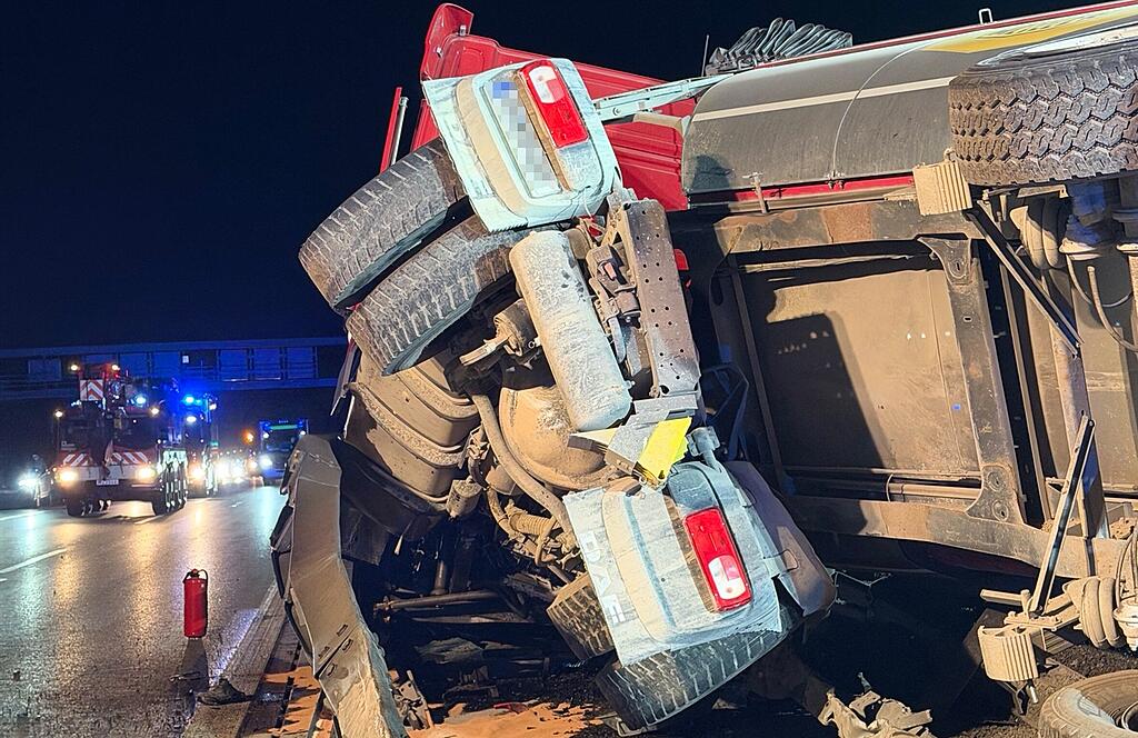 Nach Angaben der Feuerwehr kam der Laster gegen 22.24 Uhr "aus bislang unbekannten Gründen" kurz nach dem Allacher Tunnel in Richtung Lindau nach links von der Fahrbahn ab und stürzte um.