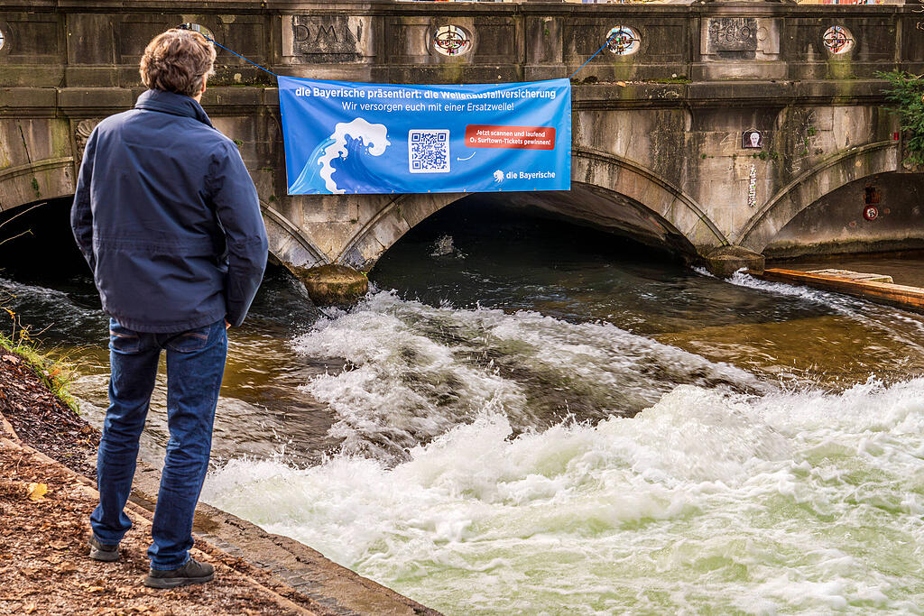 Die derzeit mehr oder weniger nicht vorhandene Eisbachwelle im Englischen Garten ist aktuell eines der Gesprächsthemen in München. Nachdem nach der Bachauskehr ein Surfen an dem beliebten Hotspot derzeit nicht möglich ist, jedenfalls nicht ohne illegal aufgebaute Hilfsmittel, wirbt die Versicherung "Die Bayerische" an der Eisbachwelle aktuell mit einer durchaus witzigen Aktion: der Wellenausfallversicherung.