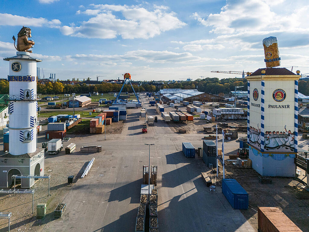 Der Rummel ist vorüber: Riesenrad, Wiesn-Zelte und Holzbuden sind längst in ihre Einzelteile zerlegt und abtransportiert worden. Auf einem Teil der Theresienwiese stehen bereits die weißen Zelte für das Winter-Tollwood (Start: 25. November). Der andere Teil liegt still und weitläufig da. Eine Frau spaziert mit dem Kinderwagen zwischen den verkümmerten Rasenflächen hindurch.