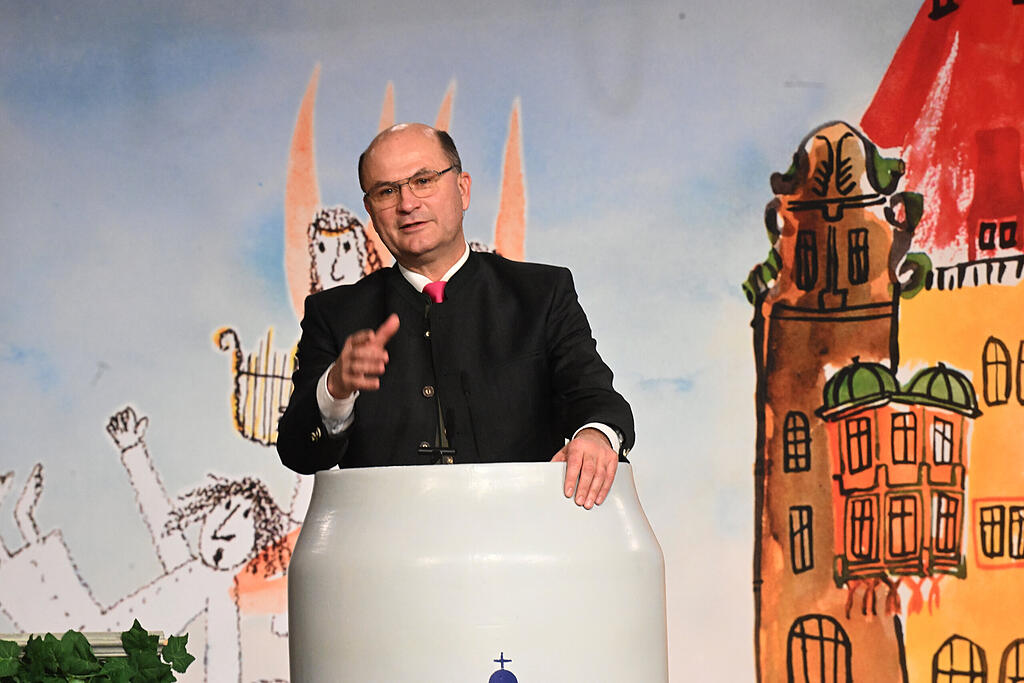 Auch den sich noch im Krankenstand befindlichen, abgewählten Oberbürgermeister Dieter Reiter und seinen noch nicht offiziell ins Amt eingeführten Nachfolger Dominik Krause von den Grünen – der ebenfalls mit Abwesenheit glänzt – thematisiert der Minister äußerst gekonnt. Über Reiter sagt Füracker: „Ich habe mich wirklich gefragt, warum ist das passiert? Ich weiß es nicht genau, aber ein Grund könnte sein, dass er nie zum Maibock-Anstich kam.“ Auch Krause sei nicht da.