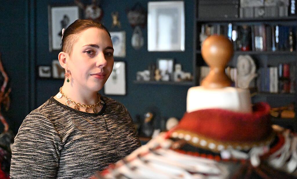 Ein Teil ihres Kostüms hängt bereits fertig über einer Schneiderpuppe. Perlen reihen sich über die handbestickten Nähte, kleine Tierzähne wurden einzeln in die Ziernaht an der Schulter eingearbeitet. "Ich suche gern Sachen auf Flohmärkten", sagt Toni. Den Rest besorge sie sich in Stoffläden oder im Internet.